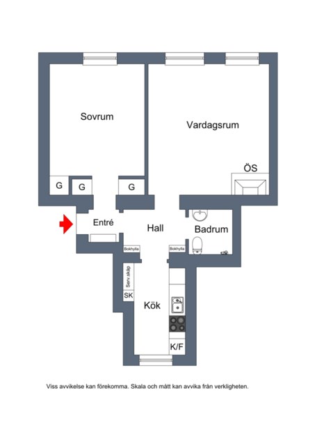 Med 56 välplanerade kvadratmetrar fördelade på 2 rum och kök erbjuder bostaden mycket goda förvaringsmöjligheter, en fin arbetsyta i köket och härlig social yta i vardagsrummet.
